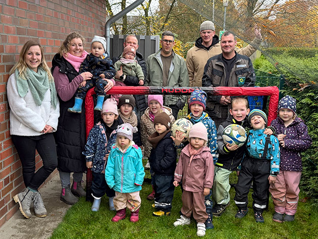 TrappenkampEin Fußballfeld haben sich die Mädchen und Jungen des Kindergartens Igelwiese schon lange gewünscht. Jetzt ist es da. Clark Kallas, einer der Kindergartenväter, sammelte bei Unternehmen in Trappenkamp und Umgebung Spenden. Die Firmen Gräber Feinwerktechnik, Lindemann Industrieböden und Kisten Jack aus Rickling spendeten zusammen 1.000 Euro.