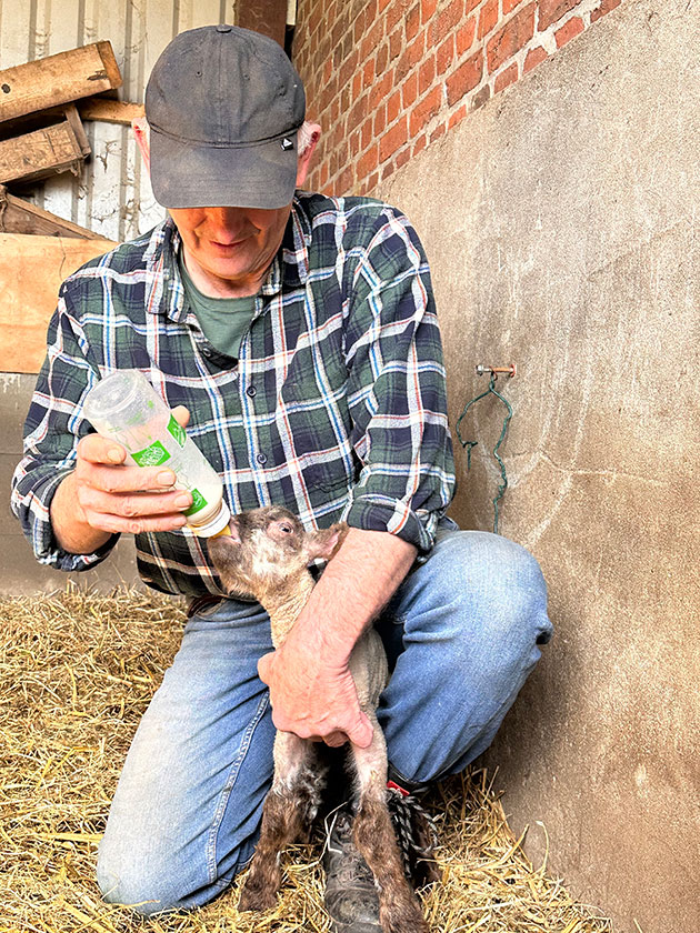 Sein Schaf hat insgesamt zum dritten Mal gelammt. Die ersten beiden Male waren es Zwillinge, diesmal dann Drillinge, das ist schon seltener. Zum Glück säugt die Mutter alle drei. Das ist in den ersten Tagen besonders wichtig, damit sie die vitaminreiche Biestmilch erhalten. Die Biestmilch (Kolostrum) ist für Lämmer absolut lebenswichtig – sie ist quasi ihr „Starterpaket“ fürs Überleben. „Erst jetzt am vierten Tag füttere ich das Schwächste der drei ein wenig zu. Auch das klappt zum Glück problemlos“, erzählt Bernd Kröger. Die Lämmer, zwei Schafböcke und ein Schaf, machen es nicht schwer, sich sofort in sie zu verlieben. Zu niedlich sind die flauschigen Wollpuschel mit Knopfaugen, die ab sofort mit über die Wiese hüpfen.