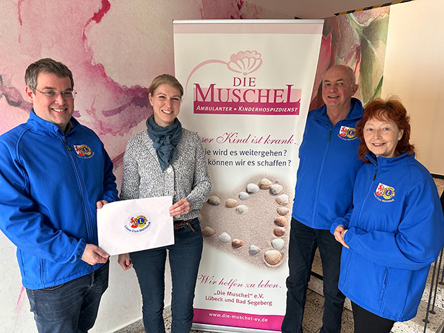 Bad Segeberg. Familien in schwierigen Situationen und in Zeiten wo Geld knapp ist, finanziell zu unterstützen, das lag dem Lions Club Wahlstedt am Herzen. Aus dem Überschuss ihres Benefizkonzerts überreichten dessen Präsident Alexander Köhn, Manuela Teutsch und Klaus Neumann 500 Euro an Lisa Kirbach, die Koordinatorin des ambulanten Kinder- und Jugendhospizdienstes Die Muschel. Der Verein hat seinen Sitz in Bad Segeberg und Lübeck und steht Familien zur Seite, die sich durch eine schwere Erkrankung oder das Sterben eines geliebten Familienmitglieds in einer schwierigen Lebenssituation befinden. „Wir betreuen aktuell 17 Familien, oft schon ab Diagnosestellung teils langjährig“, sagt Lisa Kirbach. . Einmal im Jahr veranstaltet Die Muschel einen Familiennachmittag in Lübeck mit tollem Programm, Workshops und einem Zauberer. „So haben die Familien schöne Momente zum Teilen und Eltern eine gute Gelegenheit zum Austausch“, erklärt die Koordinatorin. Die Spende des Lions Club Wahlstedt soll genau dafür Verwendung finden, verriet sie. kf
